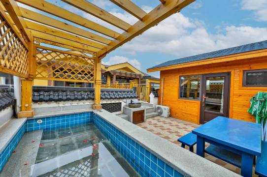 果果Design位于营口思拉堡温泉小镇,小镇属于地热带气候地区,是辽宁绿色生态环保区,这里的天然温泉水温可达90度,富含多种对人体有益的元素,具有促进新陈代谢、护肤防暑等作用~民宿整体白色徽派设计风格建筑群,室内采用具有民族特色的轻奢装修设计,24小时纯天然地下温泉入户,每套小院都涵盖室内外的天然温泉池,将得天独厚的天然地理优势尽显无疑,在这里您可以坐在小院品茶观云浮沉,夜晚星光闪烁繁星点点,享受片刻清幽慢节奏~民宿产品设施全部使用高档产品,全屋智能设计,内部温馨舒适,民宿内涵盖您简单休闲娱乐,小院为您提供全自动麻将机、台球桌、进口K歌设备、电玩游戏机、儿童乐园等等,还能享受庭院BBQ、铁锅炖。充斥生活的烟火气~民宿为了保障您休歇舒适性全部采用2m以上Oversize超大床,单人床也选用1.35尺寸,是您团建轰趴亲子度假的不二选择。时至应钟,松木挂风霜,大地萧瑟渐寒,此刻,汤池升腾起氤氲水雾,暮色苍茫沁入这潭暖泉,顷刻间,知晓了古时文人墨客为何爱这一程山水。倘若你来,我们希望你在浴华清池中,卸下紧绷的思绪,感受这山水一程的自在~