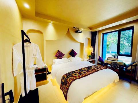 房间很舒服,也很干净,就在六星街边上,晚上很安静,不用担心景区吵闹,房间设施也很用心,管家小姐姐服务也很好,值得推荐