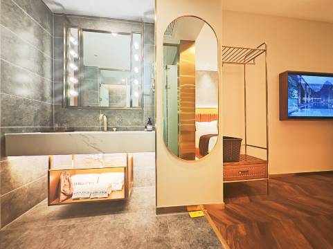 设施齐全!免费咖啡矿泉水,智能机器人,重点是酒店服务特别好,会让你出门旅游心情都会更好!离各个景区都很近,他这还有免费停车场,这个位置这个价位来住一次还想住第二次!!!前台小姐姐服务态度很好,对客人笑脸感觉很舒服,我们矿泉水不够喝有点不好意思问,小姐姐让我们直接在前台拿,还喝了两杯小姐姐做的咖啡!很不错,体验感很棒!!!