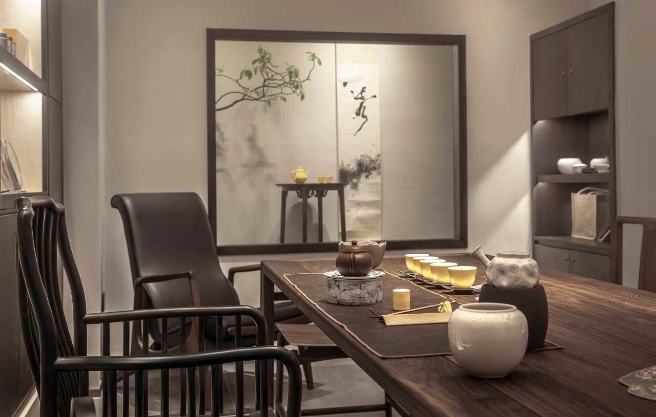 一楼设有茶室,禅茶两相依,清静雅致,富有民族特色的文化墙,还有旋转的网红楼梯,拍照打卡很出片。