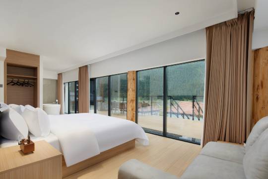 我们原本预定了晚上7点的晚餐,因为折多山堵车,酒店一直打电话和我们确认时间,晚上十点到酒店工作人员和厨房师傅一直等我们吃完晚饭才下班,很不好意思,如果老板能看到,希望能表扬你们的工作人员。第二天一早起床散步欣赏了度假屋美景。一次很棒的入住体验。我还会再来的。