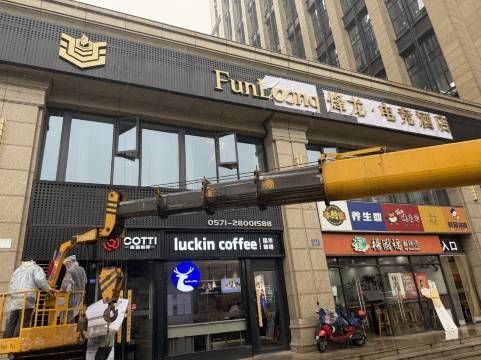 前台小姐姐服务态度很好的 很多饭店旁边 下面就是瑞幸