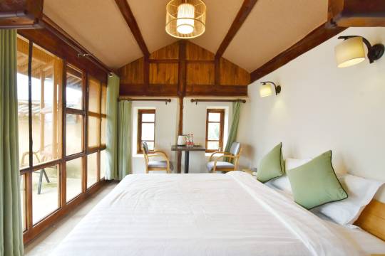 订了一间家庭房,好久没住过带水暖的房间,特别舒适!木质结构的房间一点也不吵,四周是田野,晚上睡觉很安静,距离古镇也不远,非常适合旅居,下次还会找机会去的!