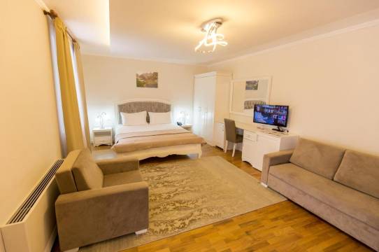施克尔泽尼旅游酒店位于巴依拉姆楚里城,距离柯曼尼湖 8.8 英里(14.2 公里),距离卡帕塞尼山原始和古老山毛榉森林 26.1 英里(42 公里)。
