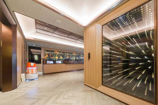 服务:服务很不错,前台免费升级成高级大床房。外卖有机器人送上门,安全有保障!