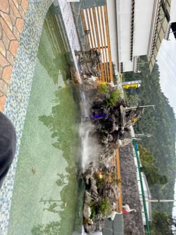 屋里特别干净,看着就舒服。他家东西看着都很新,比我们前几天住的四星酒店强多了。惊喜的是房间能看景,拉开窗户就是蓝天白云和高山,景色特别漂亮。他家楼下还有个小泳池,孩子们在里面玩得可开心了;四楼还有个观景台,在那坐坐欣赏风景非常Nice!