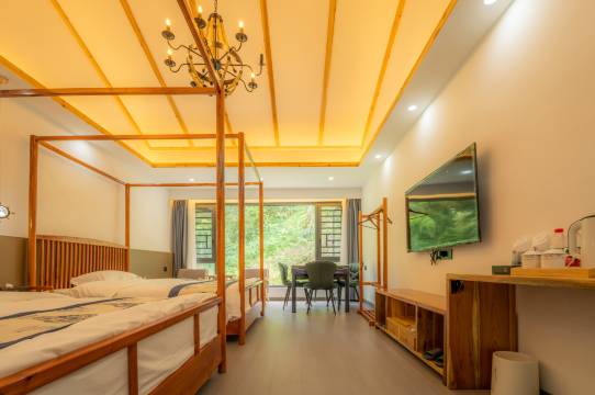 看到高分评价 来到这里果然惊喜 一层布置讲究 老板热情周到 房间干净卫生 小院环境宜人 值得重点一提的两点 一是双人间是两张宽宽的大床 二是地下一层的车库有电梯 行李从车上拿取到房间极为丝滑 该店离景区大门不到一公里 老板不但车接车送还详细介绍了游览事项 极力推荐