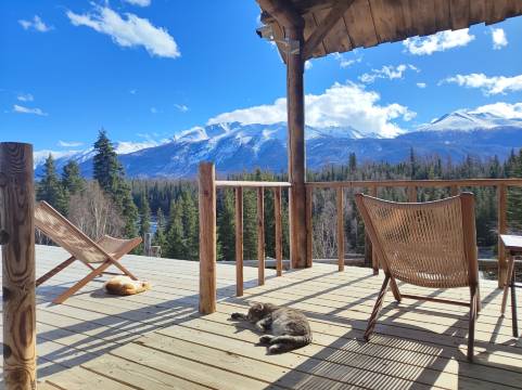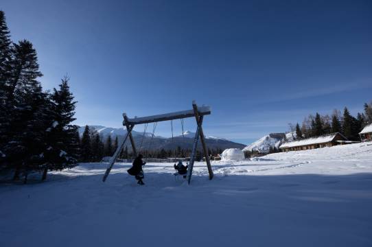 我老婆说,她第一次在离开一家酒店的时候有想哭的冲动,甚至想过直接就走了不要跟店长米热道别,因为害怕道别时会哭出来。我们一共在清一住了三个晚上,每天最享受三个时刻,第一个时刻是每天天亮前和傍晚时的blue hour,在这两个时间段现在走廊上看院子里的秋千和木屋,会在一瞬间感受到深入旷野的惬意和安逸。第二个时刻是每天去餐厅吃早餐的时候,因为往往一开门,豆豆和大头就已经在门口等着我和我老婆啦。豆豆和大头是一对母子,两只狗狗的性格都非常温和,对我们没有攻击行为反而经常主动示好,大雪天躺雪地里就把肚皮翻出来让我们摸了。每天吃早餐时米热和另外一两个工作人员都会在餐厅陪我们聊聊天,给我们介绍一些娱乐项目或者安利一些好吃的当地餐厅。第三个时刻是每天出完门回到房间的时候,我老婆特别喜欢光着脚踩在二楼地上,因为有地暖,暖气的温度也刚刚好,沙发也很舒服,我老婆经常躺沙发上玩一个小时手机才去洗澡。这三天里每一位工作人员都特别亲切、提供了几乎是无微不至的服务。比如去超市前会询问要不要帮我们带一些物资,每天会询问我们昨晚睡得好不好,房间里有没有什么物资需要补充,等等。我老婆说如果不是买了回程机票她想在清一住一个星期,直接加入酒店员工团队,每天就负责铲雪(员工们每天都会及时铲雪保证路面不结冰不打滑不对顾客造成影响)。离开清一的早上,我也在院子里铲了一个小时的雪,说实话,不轻松,但这样的事情,员工们每天要做好多好多次。我老婆说在清一住着她感受到自然的包容和人与人之间最纯粹的缘分。中国很大,新疆很大,但就是在喀纳斯的最深处,我们,和清一的工作人员,和豆豆、大头相遇了,并一起愉快地度过了几天。大自然很照顾我们,让我们领略到喀纳斯的无上美景。缘分也很照顾我们,让我们在分离时都依依不舍,在分离后又都彼此想念,并且约定再会。