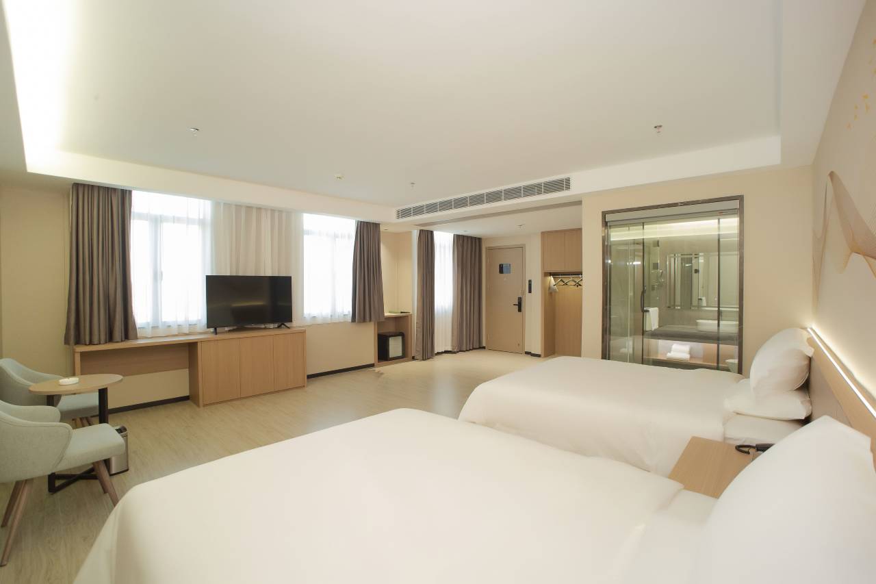 酒店很新,进大堂就感觉良好,前台很热情,因为携程等级给升级了房间,送了早餐券,也按照要求给安排了高楼层。特别好!房间干净无异味,床品舒适,外卖有机器人送上楼,住宿一晚各方面都很满意。提前预约了送站服务,很棒的体验,性价比高!会推荐给朋友