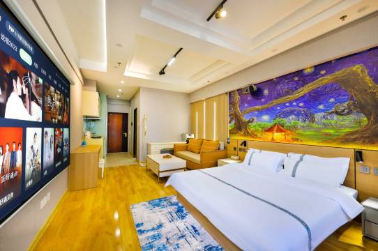 入住的房间干净整洁,布局合理,尤其值得称赞的是办公区域宽敞明亮,桌椅舒适,灯光亮度也很适合处理文件,加上稳定流畅的高速WiFi,让夜间临时加班的效率大幅提升。床品柔软亲肤,隔音效果极佳,即使在繁华地段也能拥有安静的睡眠环境,有效缓解了出差的疲惫。