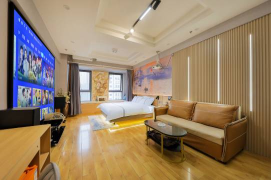 惊喜啊,一进房间非常惊喜,比携程上展示的照片还要好,屋子大,床也大,床品如同五星酒店般干净齐全,屋子里一尘不染,窗子那里设置了塌台,铺了柔软的垫子摆放了靠枕,躺着可以俯瞰夜景和星空,细节全部人性化到了极致,超大投影清晰音响效果超赞,看了前段漏到的变形金刚起源,躺在大床上体验影院感受,老板娘热情亲切,体现出沈阳朋友的好客和善良。一贯挑剔的爱人都对此赞不绝口,物超所值,再游沈阳以此为家了,祝老板生意兴隆