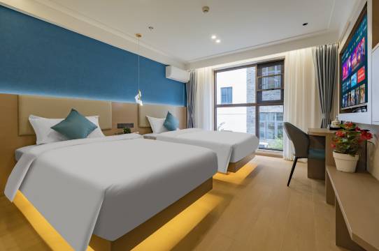 房间真的好干净,热水,设施都是很舒服很好的,睡得很舒服,新房间一点味道都没有,酒店位置就在正中心,去哪里都非常的方便,前台小姐姐们的服务真的也是打满分,这个价格真的是做到了非常非常好的,下次来都江堰还选这家。