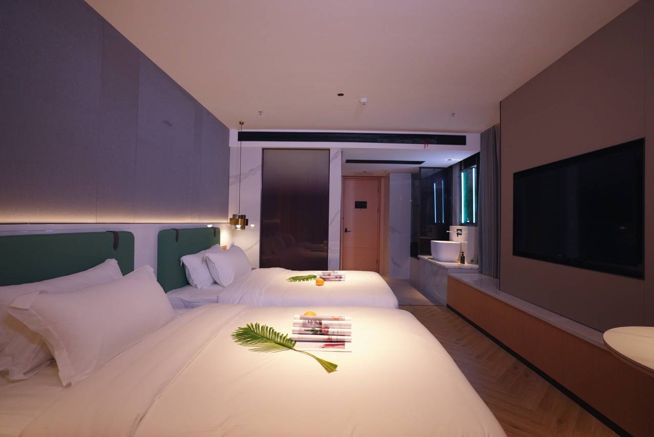 房间内配备空气净化机、高速无线宽带网络、大屏幕液晶数字电视及高清品牌投影仪,特质香氛洗护用品,楼层还配备了自助洗衣房,洗衣烘干一体机解决您旅途中的洗衣烦恼。店里希望为小主您提供细致美好的贴心服务,营造出轻松、活力而无微不至的入住体验,让您沉浸在个性张扬与现代设计的交融和碰撞中,恣享生活。品牌承诺: