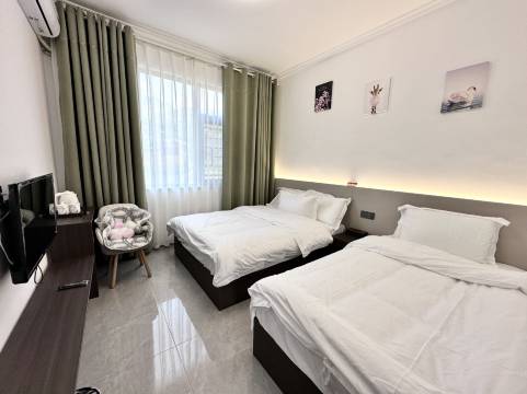 客栈很干净舒适,洗漱用品、空调都齐全,周边很安静,睡了个好觉。还有厨房、冰箱,可以自己做饭吃。交通便利,车子可以直接停到客栈附近,出门就可以逛超市买东西吃饭,老板人也热情,在湖边还有一块游玩的场地,可以去露营,吊床睡觉,晒晒阳光,吹吹海风,放松了身心,体验很好,下次还来。