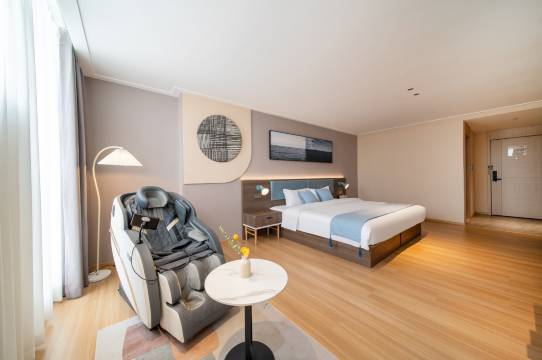 酒店位置相当不错,公共区域装修简约大气,灯光柔和不嘈杂。房间更是惊喜,床品柔软亲肤,桌面、地面、卫浴都一尘不染,没有异味;空调、WiFi稳定,隔音效果不错,晚上睡得很踏实。前台小姐姐/小哥哥全程热情周到,办理入住迅速,主动告知周边餐饮,还帮忙提行李,有问必答超贴心。