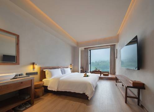 窗外就是江景🌊 晨起薄雾漫江,傍晚落日温柔,像住进画里。房间整洁,原木风温馨,床品舒服🛏️ 前台超贴心,提前给停车、游玩攻略,周边吃喝玩都安排明白,省心又省力~