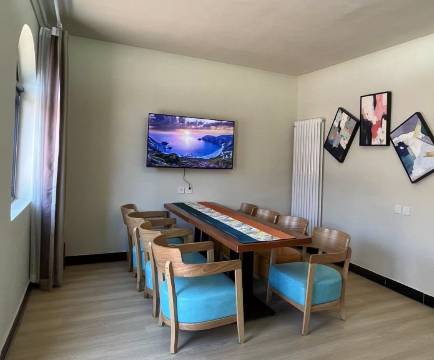 地理位置离开新都桥镇(就是热闹的地方)有点距离的、大概有10km、自驾比较合适。没那么喧闹、有种比较静怡的感觉。一幢楼一共有4层、有电梯。由于海拔较高、3600左右、房间配备制氧机(免费)。选的揽月房型、连住2晚。办理入住会添加民宿微信、有问题可以微信上问。揽月房间有大露台、比较适合有吸烟的同行者。房间设计的很好看、有灯带、晚上很亮腾。床品也很舒适、洗漱用品有润肤露、一次性剃须刀需要问客服要。晚上还有白木耳红枣汤(第二天外出回到房间碗没收走、厕纸没有补充)。民宿主楼边上也很漂亮、很多野营区域、晚上还有烧烤区域、食材民宿点单、但是要自己烤。早餐是定食、九宫格,吃过2天、发现格子里面略微有变化。咖啡需要另外点单、不太好喝、还是别点了、速溶的,需要喝的可以沿途找卖咖啡的车子、这种倒都是磨豆子的。我们一家三口、早饭多一份没有另外收费、非常感谢。不想外出觅食的也可以在民宿吃饭。