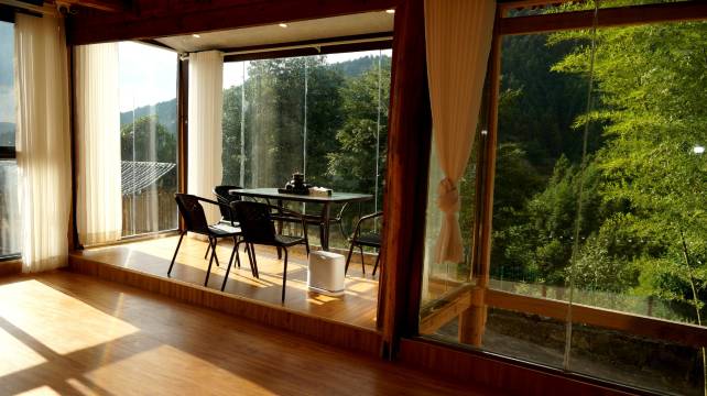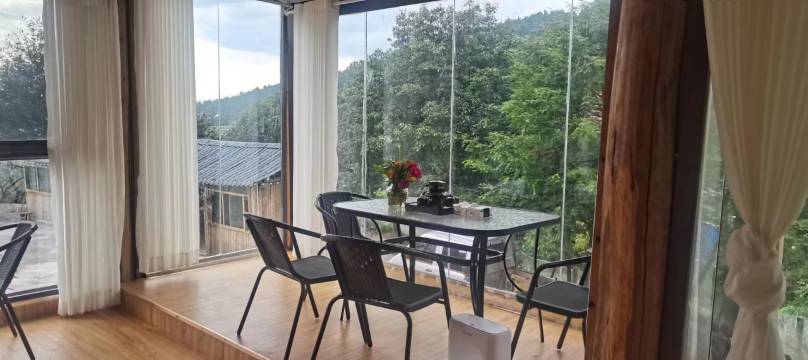 房间只有四间,而且都是观景房,很大,是落地窗,孩子特别喜欢房间里的摇摇椅,晚上睡觉很凉快,而且老板娘很热情,可以煮早中晚餐,而且这个酸汤鱼一点都腥,虽然只吃过这个民宿的酸汤鱼,单看其他景区的酸汤鱼评价,估计这个民宿的酸汤鱼是最好吃的了。而且田园风光也很好!一家老小一起,但是建议白天上行和下行,位置确实高了点,弯道太多,如果是外地车走平坦路那种,开车一定要慢,对了,吃完饭,我外婆觉得老板的花椒很香,老板还很贴心的装了一小袋给我们,并且未收费,那些菜都很清香,全是土家菜,健康的很,酸汤鱼和那个什么青椒炒小鱼无敌了,老板还送了生菜给我们烫酸汤鱼,设施也都挺高级的