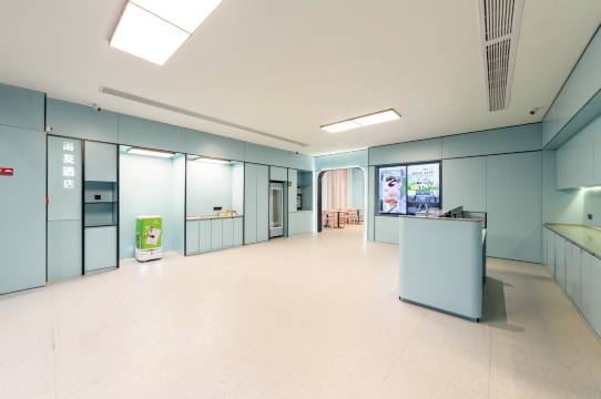 一进门感觉很舒服,前台也有热情的问好声,办入住时还倒了一杯热茶,点外卖有机器人送物,衣服前台小姐姐也会帮忙洗好烘干机器人送房间,总之体验感非常不错,还有就是地下停车场非常方便,电梯直达酒店大堂,真不错,出差首选