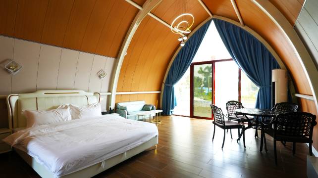 日出五舍,最美海岸线上的梦幻船屋,伴随着清新的海风,您可以沿着沙滩漫步,感受海面清爽和浪涛的声音,亦可在厢房天台上静享日出日落,或是沉浸在山海氛围中放松身心。