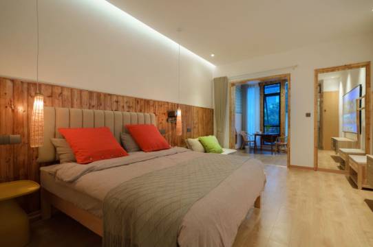临时和朋友还有朋友家小朋友一起周末出游,订房反应很快,山上店没房间了,订朱家门店亲子房,床很大,住两大一小完全没问题。老板人特别热情,给的出行、就餐、周边景点爬山等信息及时和准确、细致周到。服务人员也都很友善。可惜这次时间太紧张,春天或者夏天要再来。