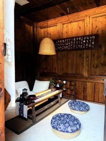 重点夸夸他们家茶室!本来只想随便喝口茶,结果被安利了新出的下午茶,那个蜜桃乌龙甜丝丝的,配到巴斯克蛋糕绝了!我们坐的小包间超舒服。后院还有书画空间,我穿上民宿免费提供的汉服便执笔体验了一回文人墨客的感觉,茶艺师小姐姐还教我们摆了几个拍照姿势,朋友圈发出去全是问地址的~