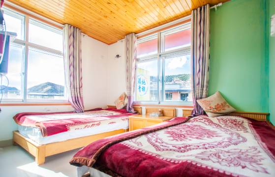 旅舍外观装修具有藏族特色,客房整洁、温馨;内设有独立淋浴间、24小时热水、无线wifi等。