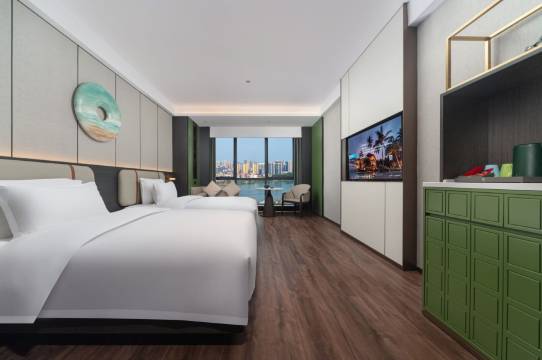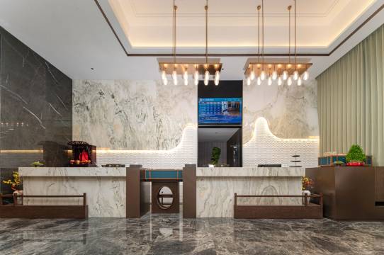 古风装潢的感觉,进去特别舒适,窗帘是智能的,卫生间的玻璃很好看,前台小姐姐服务很好,住进去很舒适,早餐的炒粉和糕点之类很好吃,种类比较多,以后还会选择!
