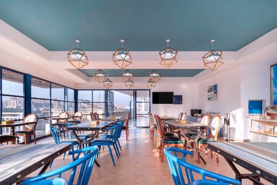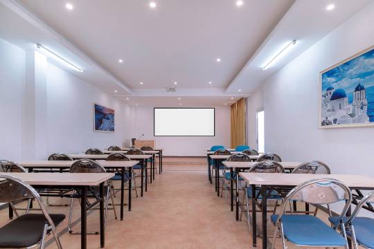 酒店拥有地中海主题圆房,景观房等各主题风格类型房型;另配备多功能会议室、地中海休闲厅,为客户提供健康、舒适的高附加值产品及良好的睡眠体验。