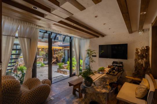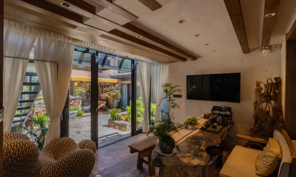 客栈院内花草茂盛,一年四季长青,随意摆放的藤椅,呼朋唤友,或发呆,或畅谈,或狂歌欢腾,不必独钓寒江,一杯清茶,一抹阳光,谈世事如浮云聚散。小巷蜿蜒而宁静;院子宽敞细致,音乐,阳光,木楼。院内环境布局巧夺天工,古朴的石台阶,石磨盘的流水池鱼,伴随着缓缓水系游来游去。站在客栈天台,可观古城山景之壮丽。欢迎您的丽江之旅,下榻本客栈,享受丽江的柔软时光,享受品茶聊天之乐趣。