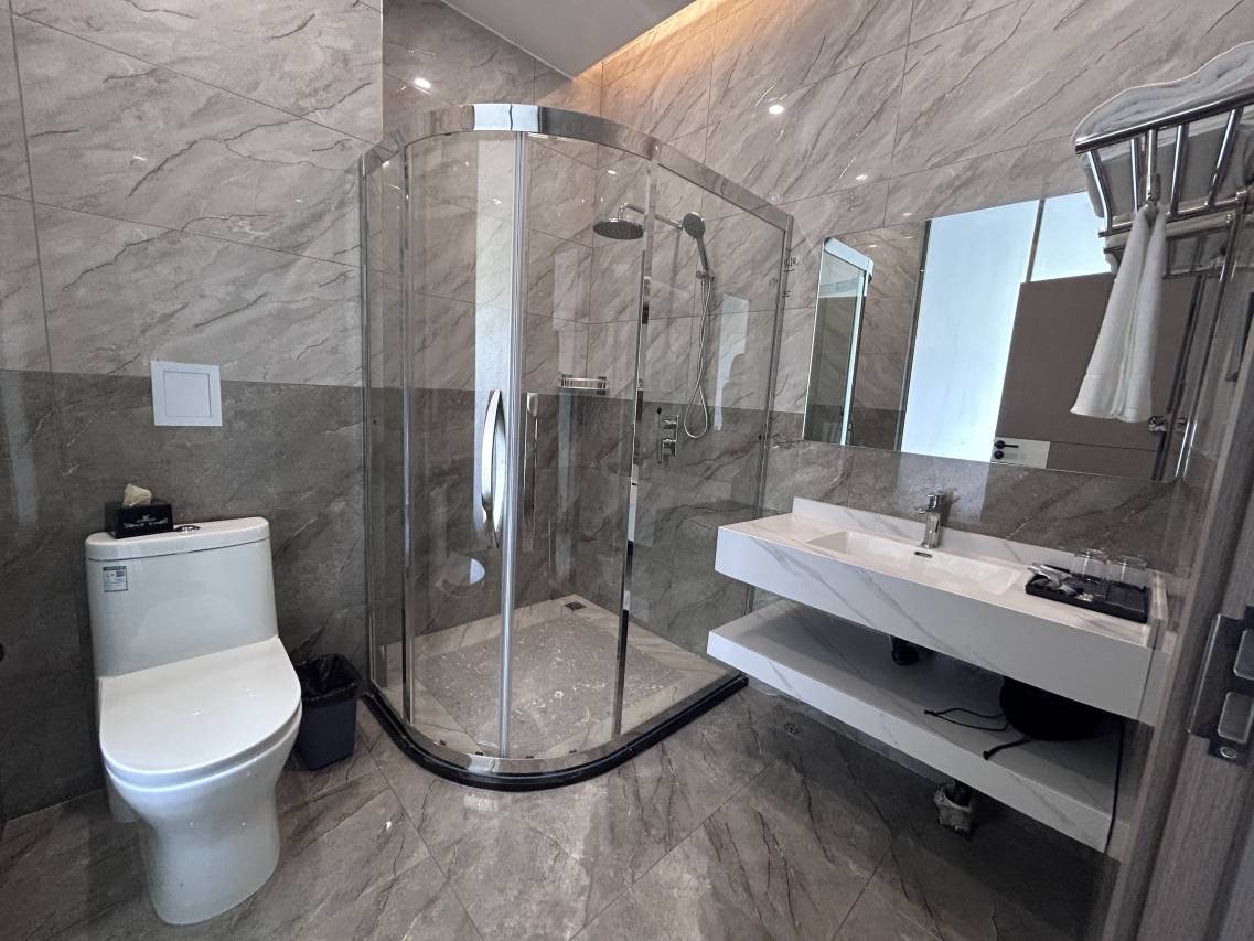 房间挺大的,卫生也干净,设施也齐全。前台阿姨服务态度也挺好的,要说唯一不足就是楼下吃的有点少,因为距离问题,外卖不愿意配送。
