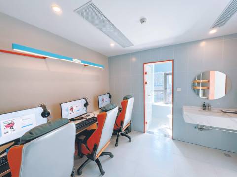 位置绝佳,就在文海南路地铁站旁边,出站走几步就到,对于外地来或者周边学生党来说太方便了。房间配置拉满,网速快不卡顿,外设都是大牌,手感一流。环境也超乎预期,没有普通网咖的烟味,房间隔音好,空调给力,床垫也很舒服。前台服务热情,响应及时。下次来杭州打游戏还住这!