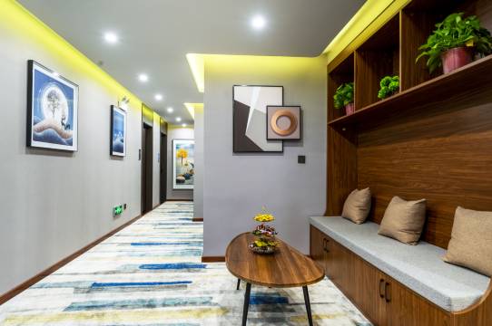 酒店其实是在锦圣邸花园洋房小区里的一间民宿,位置极其之好,从侧门走出5分钟即是大唐不夜城,10分钟到大悦城,有自己的专用电梯直通车库,也有自己的专属车位,房间干净整洁,布草优良,前台姑娘小伙服务热情,园区内花草成茵非常舒服。唯一有点些许欠缺的是房间面积比较局促,这也是格局所致,总体非常推荐。