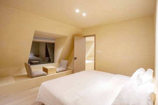 民宿极简风装饰,超级符合我的审美,两人带娃住妥妥的很舒服!床也睡的很舒服~唯一的不足就是窗户太小了~