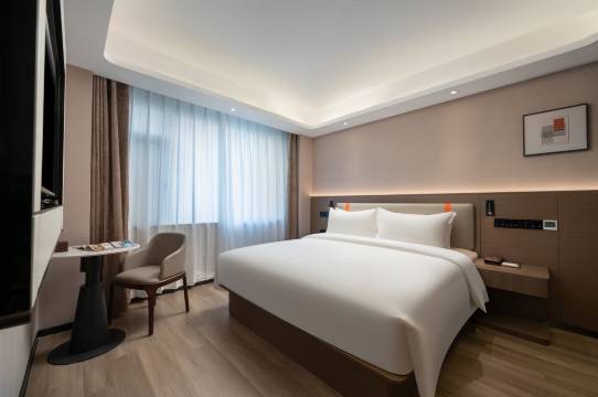 客房内设施一应俱全,电动窗帘,智能马桶,还贴心的配备了一次性马桶垫,设施很新颖,床品也很干净整洁,位置出行很方便,还有免费的大停车场,酒店大厅很漂亮,适合打卡拍照,整体体验物超所值,下次还会再来!