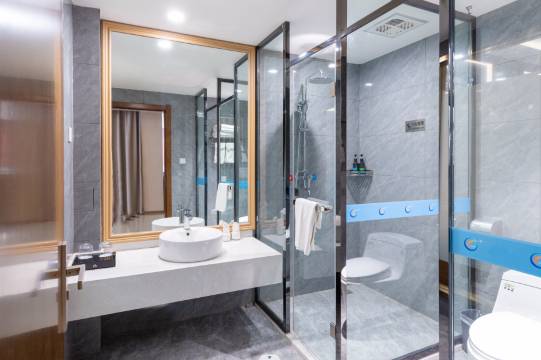 房间宽敞明亮,干净整洁。房间设施齐,很喜欢沙发,可以躺着休息。卫生间干湿分离,洗漱用品不错。早餐菜品丰盛,味道不错。