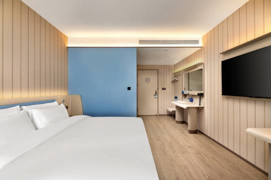 房间很大,干净整洁,周边很安静,可以好好的休息,前台工作人员的服务态度超级棒!酒店内的设施都很完善,超乎我的预期,比其他汉庭好!