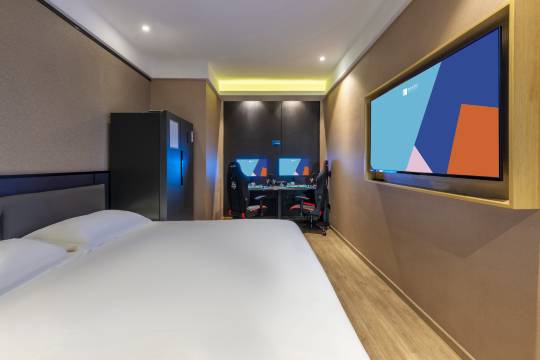 新颖时尚的设计风格恰到好处的阐述了高端酒店与电子竞技的理想结合。单人间到六人间满足各种宾客的需求。酒店配置专业电竞设备以及提供专业的电竞服务。为高端游戏体验增添流畅度。