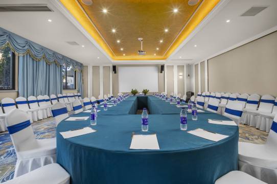 4、酒店具有会议室,场地开阔,环境雅致,设备齐全,会务接待细致周到,专职的会议管家为您提供圆满的会议旅程。