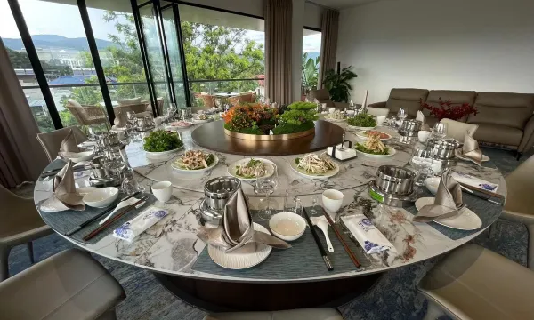 每栋楼都是官方招待所的风格,稳重气派;房间又大又漂亮,房间内的沙发茶区,与阳台上的小茶几,都很舒服。