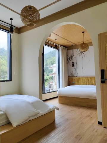 房间很有竹韵特色,楼下还有K歌房,适合一家人出游入住,若餐饮完善会更好