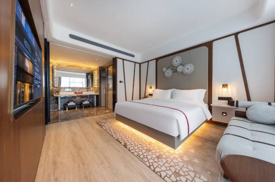五星好评!房间干净整洁,床品柔软舒适,睡得特别香。房间里还有马歇尔音响,连蓝牙听歌超有氛围感,洗护用品的味道也很好闻。傍晚点了外卖咖啡,居然有机器人直接送到门口,方便又贴心。