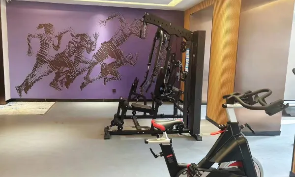 有健身房,有餐饮。停车场住宿就餐是免费的场地很大呦。酒店位置不错,出门就是公交站。沿街吃饭选择性多,酒店前台接待服务很好。