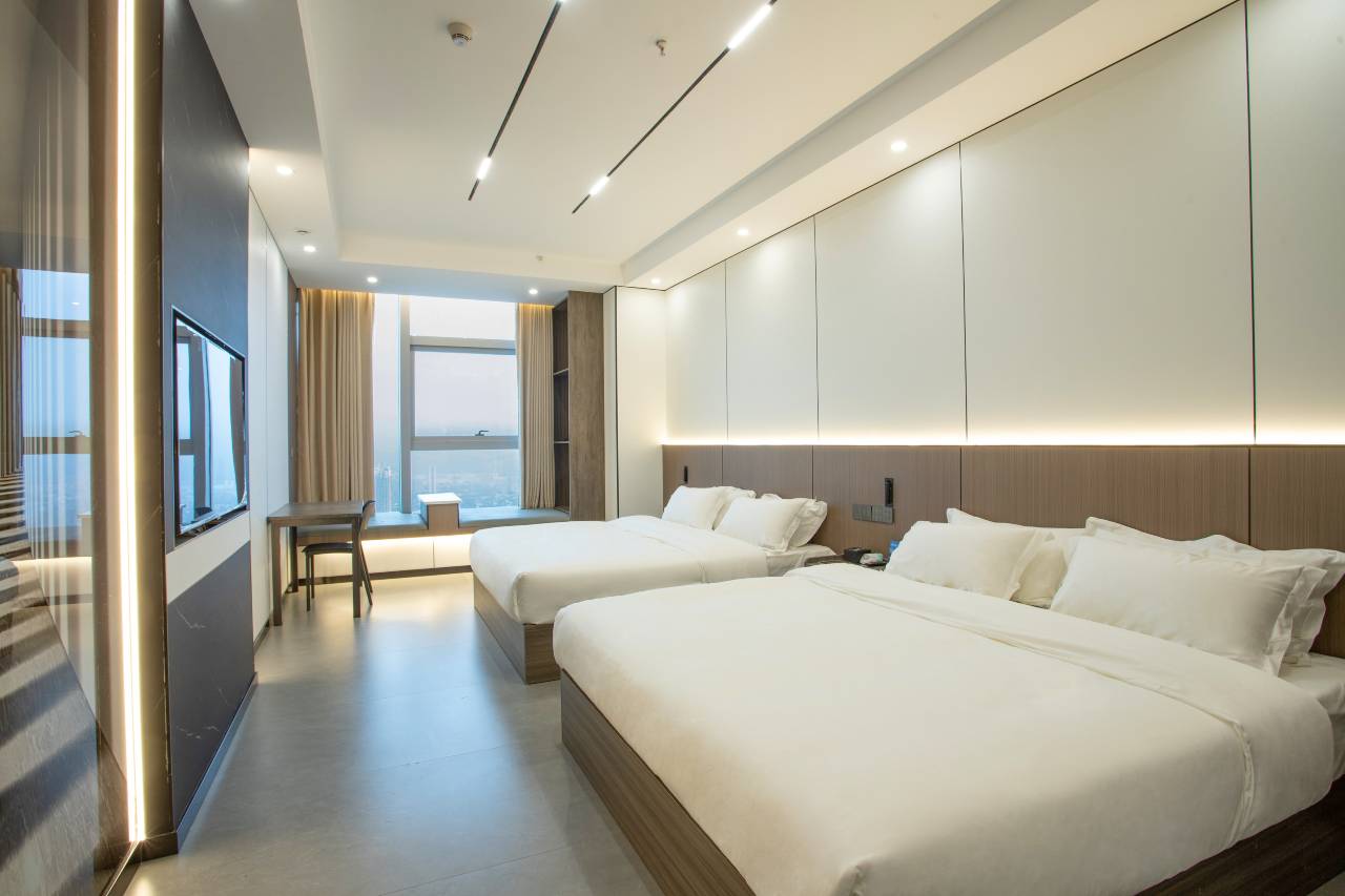 酒店环境很好,是高空酒店景色很不错。设施齐全,都是智能化设备,很方便。服务非常热情,清洁卫生做得很到位,不错的酒店!