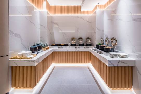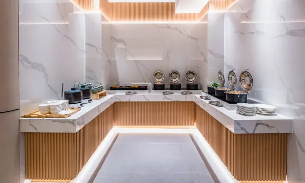 酒店一楼餐厅提供丰富的中西结合自助早餐,更有当地特色食材制作出的菜式,为您开启一天的美好心情。