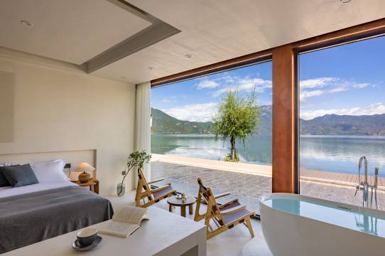 房间的大玻璃面向超美的泸沽湖,可以步行到湖边栈道,漫步享受超美的湖景!