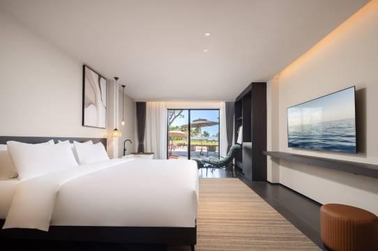 酒店是一家豪华度假酒店,一线海景风光。酒店拥有豪华海景客房、泳池房和豪华泳池海景客房。泳池房从客房直通户外海景泳池;豪华海景客房是一个坐拥海景露台,饱览迷人海景,将热带风光尽收眼底。豪华泳池海景客房直通泳池又可在房间内一览海景。超大私人草坪, 是举办会议、晚宴、主题派对及婚礼的卓越之所。高速免费的有线网络及无线网络全覆盖酒店客房及公共区域。酒店内设24小时免费停车位。蜜月度假和亲子旅游等海岛旅游度假综合一体。