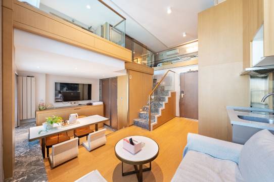 loft房型上下两层,可以自己做饭,隔音效果很好,附近有便利店,大型商场,都很方便,离地铁站也很近,家庭出游也是不错的选择👍🏻