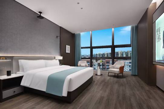 房间很新 设施不错 智能马桶+干湿分离的卫生间 酒店位置很好离地铁站非常近 不管是从机场来还是去坐高铁交通都非常方便
