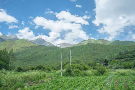 一路尘烟,从四姑娘山经丹巴,明暗交替穿过无数隧道,暮色中遥遥看到雪山尖顶,天色全暗之前到达了酒店。